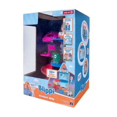 - FEATURES Spin Blippi on his captain’s chair, use the elevator, and fly on the anti-gravity claw.