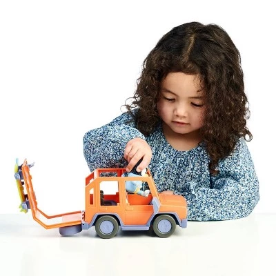 Take Bluey’s whole family for a drive in the Heeler 4WD! It’s the perfect car to go on fun playful adventures. Open the top of the Family Vehicle to fit all the family Figures inside. The Vehicle is the perfect match for Bluey’s Family Figure Pack. (sold separately) You can fit four Figures inside! A Bandit Figure is included so he can drive the family around! On the roof of the Family Vehicle is a Surfboard Rack that holds 2 Surfboards. The Surfboards come off for the whole family to use. They are compatible with all Bluey Figures and are great to use when they drive to the beach. The Vehicle also comes with a fun sticker sheet that includes backseat rubbish and beach friends so that you can decorate the car. Children will love to recreate some of the most memorable moments from the show with these adorable toys!