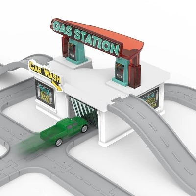 Create your own little world with the Build-A-City playset from DRIVEN by Battat! This toy set is fully loaded with cool features, including lots of tracks, ramps, and intersections to connect. There are lots of miniature road signs to make it look like the real thing, as well as tunnels and bridges. This playset also comes with lots of toy vehicles, including a car, police jeep, three work trucks, and even a helicopter! Everything you need is here to bring your imaginary city to life.