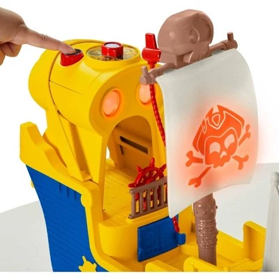 - Interactive pirate ship playset with realistic “sailing” motion, lights, sounds, phrases and full story prompts from Nickelodeon’s Santiago of the Seas animated series