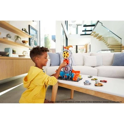 - The playset comes with 1 Hot Wheels vehicle but up to 4 toy cars can roll through the tire structure at once for non-stop action (additional cars sold separately)!
