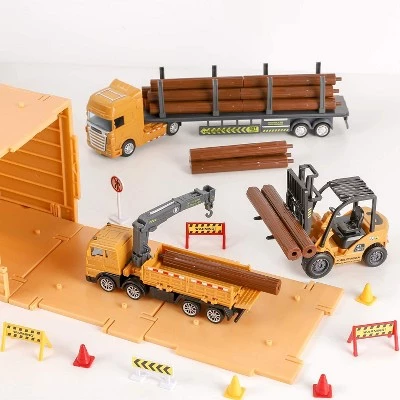 - Build Your Own Fun: Cargo transport set includes 6 trucks, road signs, barriers cones and more. The construction set is made up of 54 pieces.
