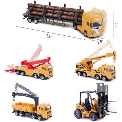 The iPlay, iLearn, Construction Site Set consists of a 54 piece cargo transport vehicle set with Gantry Crane, Pickup Truck, Tow Truck, Logging truck, Magnetic Crane Vehicle, and forklift. The set also includes many accessories like road signs, barricades, barriers, and safety cones to give your child hours of discovery and excitement. The Handy storage box can be converted into an interlocking play mat. Working hands-on with tools will strengthen your child’s gross and fine motor skills. It will improve color recognition, vocabulary, counting skills, and cognitive skills. Playing along with other children will improve social interaction and discussing the use of these trucks will increase their knowledge. All parts of the toys are made with durable high-quality material that has been designed to withstand drops and bumps, all the parts are also ergonomically designed for little toddler hands and fingers. This construction truck set is the perfect gift for any occasion.