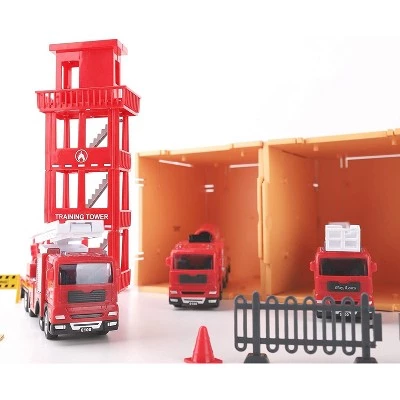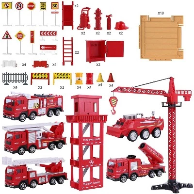 - Build Your Own Fun: Fire truck set includes 5 trucks, 1 tower, 1 crane, barriers, road signs, and more. The construction set is made up of 50+ pieces.