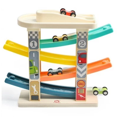 Race towards hours of playtime fun with the Topbright Toys 4 Level Ramp Racer Tower with 4 Wooden Race Cars for Toddlers.Ideal for toddlers from 18 months to 2 years old, this tower racer will have your little one giggling and having a blast time after time. With 4 brightly colored ramps and 4 numbered race cars, your toddler will enjoy creative racetrack fun. Designed to promote the development of fine motor skills and hand-eye coordination, these round-edged cars are safe for little hands and the soft-finished tower assembles quickly and sturdily.With the included top-loading ramp your child can launch into expanding their imagination with ease. Including built-in stoppers on each ramp, you won’t have to worry about cars flying off the track, getting lost, or your kids leaving your preferred play area for worry-free continued speedy fun. This adorable tower also promotes communication, sharing skills, basic physics, and problem-solving, all while bringing a smile to your kid’s face.Watch your child discover hours of car-based fun with the 4 Level Ramp Racer Tower with 4 Wooden Race Cars for Toddlers from Topbright Toys ..